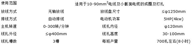 高速成圈打扎機主要技術參數